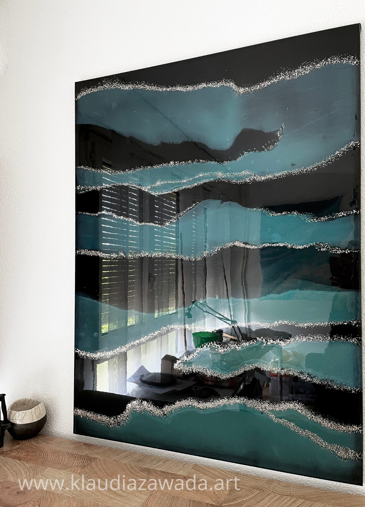 • Medium: Epoxy resin on canvas stretched on a wooden frame.